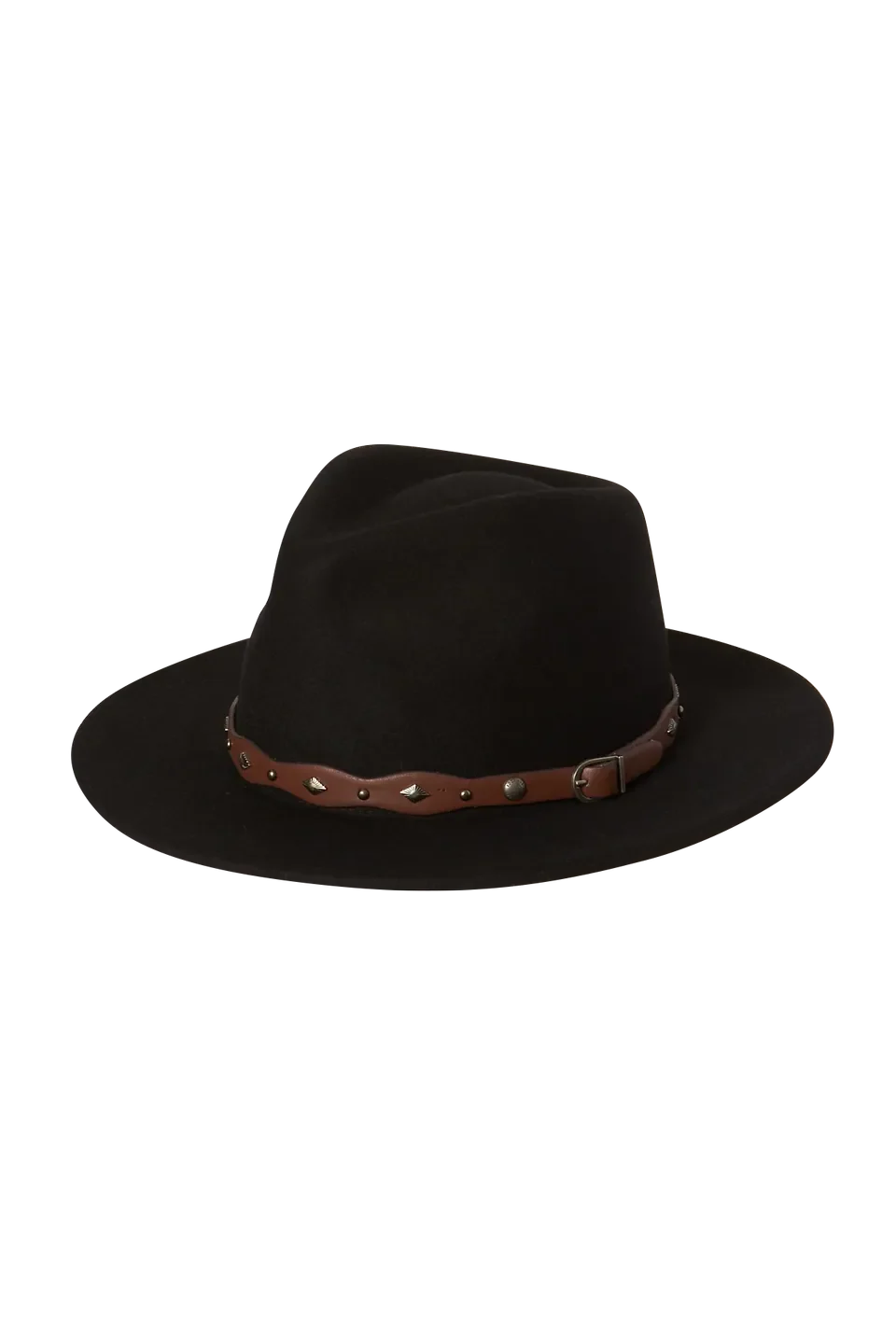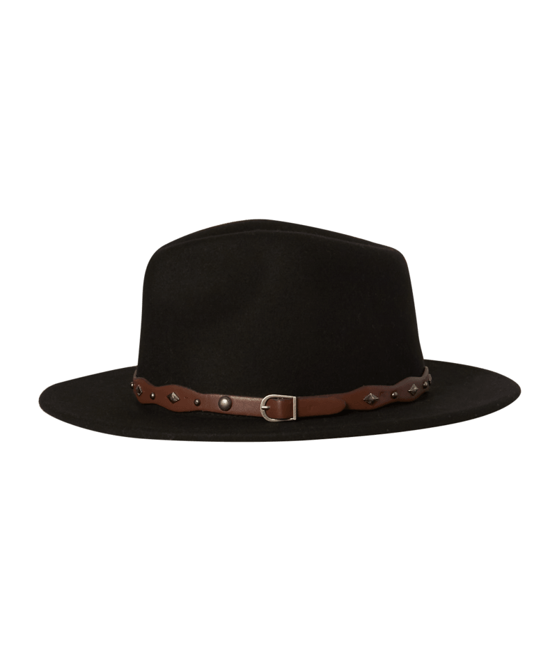 Crafted from premium 100% Australian wool, this stunning fedora holds a strong, commanding shape you can rely on for any adventure. The standout feature is the studded leather-look band which adds a brilliant touch of unique character and detail.