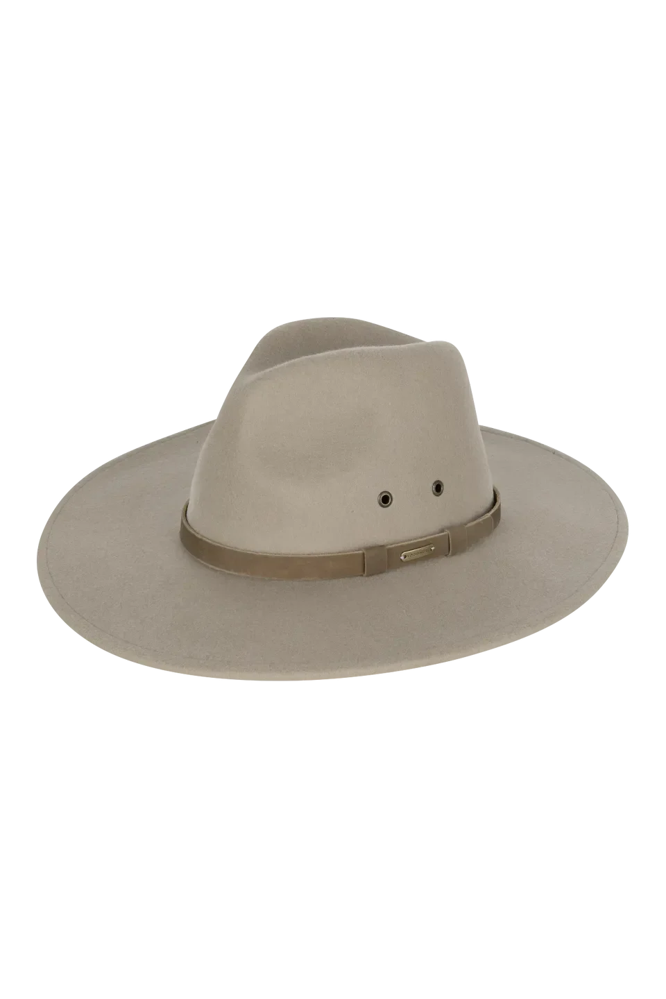 Created in Australia, the Marshall Felt Hat is crafted from 100% premium Australian Merino Wool, offering all round unmatched quality. This hat features a distinct sturdy flat brim and an elegant leather crown band, blending functional durability with sophisticated style. The Marshall is the high-end choice for the discerning traveller who demands both performance and aesthetic appeal.
