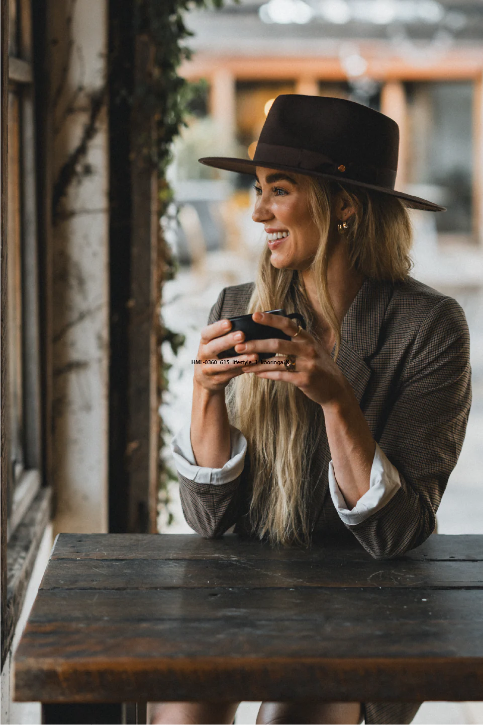 The Tara is a piece of enduring Australian luxury, designed for the discerning individual who appreciates natural quality. Crafted from exquisite 100% Australian merino wool, the Tara provides superior comfort and structure. The classic fedora silhouette is elevated by a distinguished grosgrain ribbon crown band and a subtle metal trim logo. Essential for sun protection, the Tara is made with 50+ fabric, making this high-quality hat the perfect accessory for embracing the seasons in style and safety.