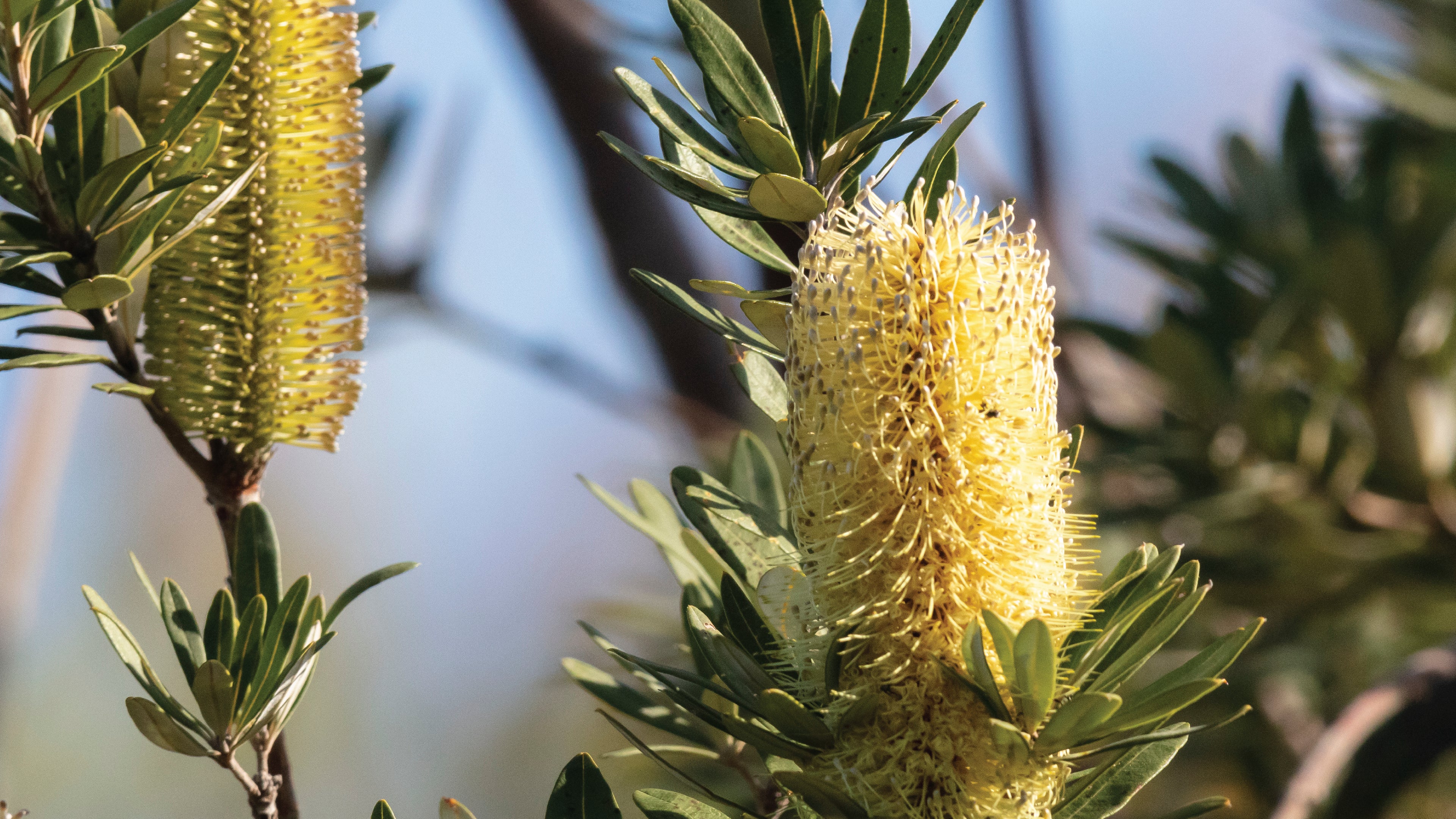 The Australian banksia plant lives by the sea, where the ocean and wilderness meet.