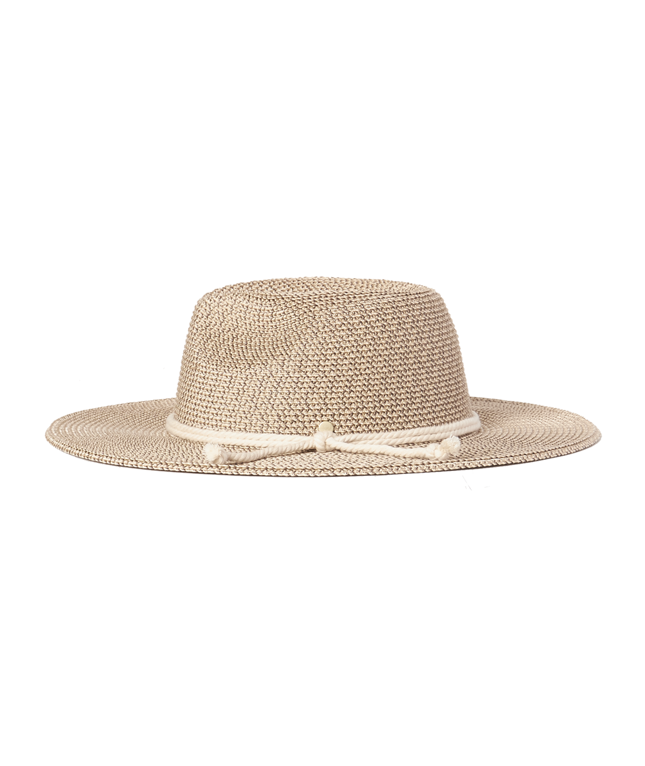 - Well formed and rustic safari with tied knot trim.